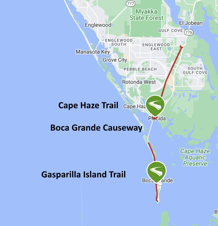 This is an 8.5 mile tree-lined, paved trail running parallel to County Road 771/Gasparilla Road on the Cape Haze peninsula east of Englewood.