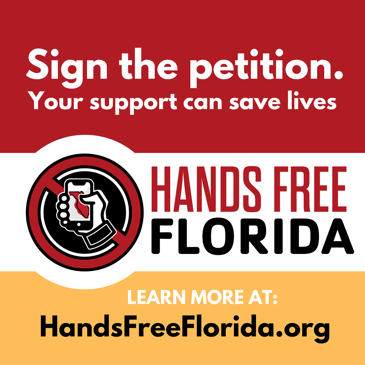 Go online at HandsFreeFlorida.org and sign the petition that will be presented to Florida legislators.